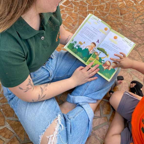 Além disso, oferecemos aulas de inglês que vão além do ensino tradicional. As crianças aprendem o idioma de maneira natural e divertida, por meio de atividades práticas e interativas, que incluem músicas, jogos, histórias e conversação. Isso permite que o aprendizado do inglês seja fluido e integrado à rotina diária das crianças.